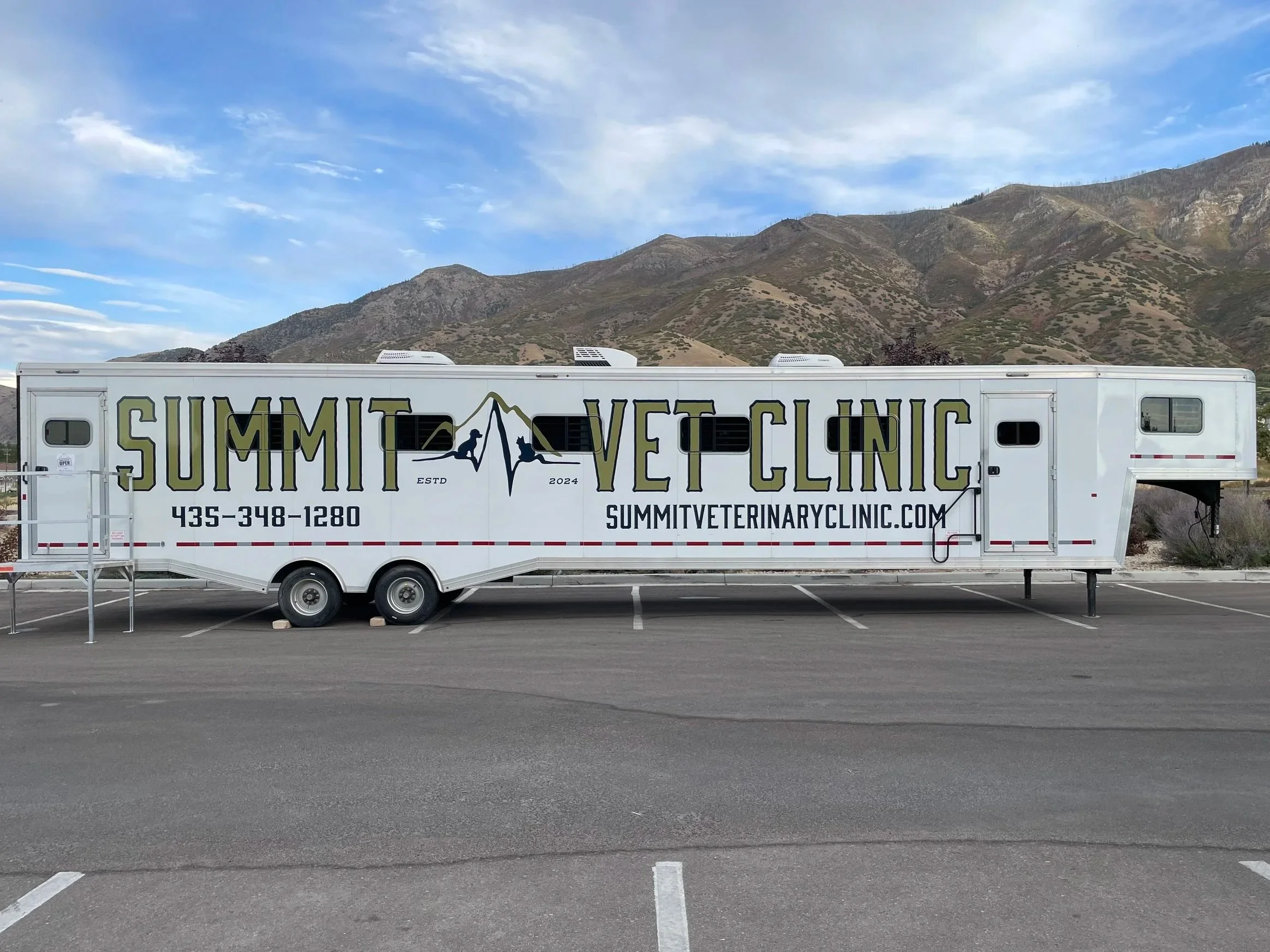 We are pleased to introduce Summit Veterinary Clinic to Santaquin and surrounding communities. Summit Veterinary Clinic is a state-of-the-art mobile clinic specializing in small animal veterinary medicine and surgery. We are neither a traditional mobile clinic nor a traditional brick and mortar. Summit Vet is a 53’ trailer with a long-term parking spot at the Trailer Parts Wholesale (TPW) parking lot in Santaquin, allowing us to provide a consistent fully equipped location while maintaining the efficiency of a mobile model.